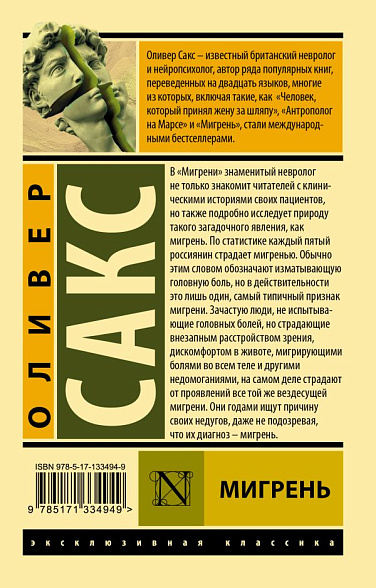 Оливер Сакс — известный британский невролог и нейропсихолог, автор популярных книг, переведённых на 20 языков. Многие из его произведений, включая «Мигрень», стали международными бестселлерами. В этой книге знаменитый невролог не только знакомит читателей с клиническими историями своих пациентов, но также подробно исследует природу такого загадочного явления, как мигрень. По статистике, каждый пятый россиянин страдает мигренью. Обычно так называют изматывающую головную боль. Но в действительности это лишь один, самый типичный признак мигрени. Зачастую люди, которые не испытывают головных болей, но периодически чувствуют внезапное расстройство зрения, дискомфорт в животе, мигрирующую боль во всём теле и другие недомогания, на самом деле страдают от той же мигрени.