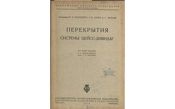 Предлагаемая вниманию читателей брошюра, посвященная железобетонным цилиндрическим перекрытиям системы Цейсс- Дивидаг, представляет известный интерес в нашем исключительно большом фабрично-заводском и коммунальном строительстве. Отличительною особенностью этой системы перекрытий является то, что она, позволяя перекрывать весьма большие пролеты при значительном шаге колонн и при всей своей простоте, по сравнению с прочими железобетонными перекрытиями больших пролетов, во многих случаях дает значительный экономический эффект. Последнее обстоятельство имеет для нас особенно существенное значение в связи с рационализацией и снижением себестоимости строительства. Несколько медленный темп внедрения перекрытий системы Цейсс-Дивидаг как в наше строительство, так и в заграничное, по-видимому объясняется новизной конструкции и отсутствием опыта по проектированию и возведению таковых. В виду того, что большинство вопросов, связанных с этой системой перекрытий, в настоящее время является далеко не решенными, проектирование и возведение таковых конструкций требует к себе особого внимания, продуманности и тщательности производства работ. В этой области предстоит еще проделать большую научно-исследовательскую и экспериментальную работу. Внедрение в жизнь этой системы весьма напоминает развитие безбалочных перекрытий, которые вначале были встречены с особою осторожностью и даже с некоторым недоверием и лишь сравнительно недавно получили общепризнанное значение. Основною задачею настоящего издания является систематизация всего накопленного опыта в области проектирования и возведения цилиндрических перекрытий системы Цейсс-Дивидаг. В связи с этим на содержание этой брошюры следует смотреть, как на имеющийся в настоящее время материал по этому вопросу. В первых параграфах приводится описание железобетонных перекрытий этой конструкции, осуществленных, главным образом, в Германии, а также построенных и ныне находящихся в постройке на территории нашего Союза. Расчет оболочки приведен в соответствии с теми принципами, которые были приняты для расчета инженерами Bauersfeld'ом Dischinger'ом и Finsterwalder'ом. Настоящий прием расчета следует рассматривать как первую теоретическую попытку, которая в дальнейшем должна совершенствоваться в целях получения наиболее точных результатов, характеризующих напряженное состояние оболочек. Для иллюстрации теоретической части и возможных приемов конструирования разобран частный случай одного из таких перекрытий. Несомненно ценными являются помещенные в конце книги табличные данные, сводящие по существу расчет эллиптической оболочки к самым простым арифметическим действиям. В заключение следует отметить, что материалы, приведенные в настоящем издании, были обработаны нижеследующими сотрудниками Ленинградского отделения института сооружений: инж. И. Я. Раппопортом - в части описания построенных конструкций и опытных данных, инж. Л. И. Зархи - в расчетной части и инж. А. С. Малиевым в части, касающейся применения предложенных им таблиц для расчета оболочки. Приведенный пример конструирования и расчета исполнен инж. Д. В. Кудрявцевым и И. И. Рындиным. Большая вычислительная работа по составлению таблиц проделана сотрудником Института М. В. Николаевой.